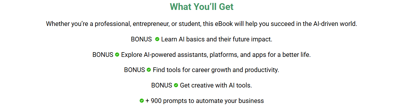 Unlock the power of AI with this ebook! See how AI prompts can change your career and daily life. Whether you’re a professional, entrepreneur, or student, this eBook will help you succeed in the AI-driven world.